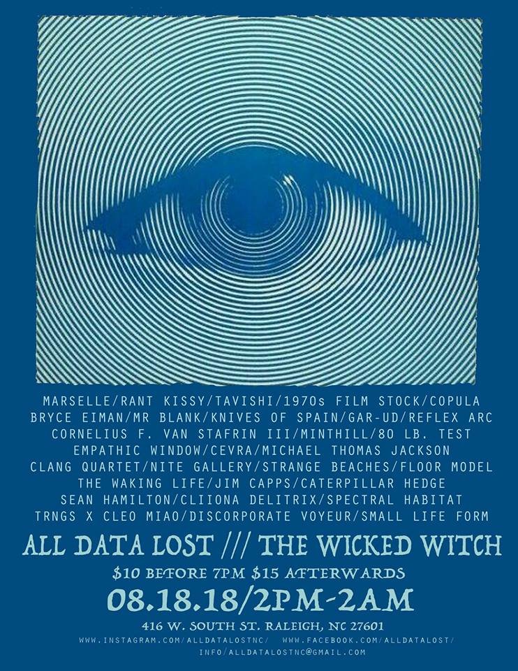 Charles Ovett (Joules, Dallas Thrasher) and I have played many fests together both in and out of NC over the past couple of years, and we wanted to join up to run our own fest. We both believe in fostering the community of noise/experimental artists by offering opportunities for artists of all ages, genders, backgrounds and experience levels chances to share their talents and connect to other like-minded folks. We’re hoping that the first rendition of All Data Lost opens more doors for everyone performing and attending, and that everyone leaves feeling inspired to create new work.